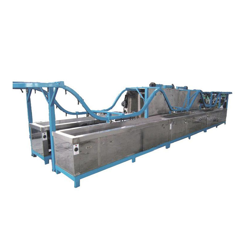 采用自動懸掛鏈輸送的多工位超聲波清洗、超聲漂洗、噴淋、純化、烘干清洗線,主要用于清洗汽車剎車片鋼片、硅鋼片、汽車、摩托車零部件等,全清洗線采用優(yōu)質(zhì)不銹鋼制作,依據(jù)各工序設有自動補液裝置,對液面、溫度等工藝參數(shù)進行自動控制,對生產(chǎn)特殊情況設有緊急停車自動報警裝置。同時可以依據(jù)工藝不同隊設備的清洗工序等進行自行調(diào)整。